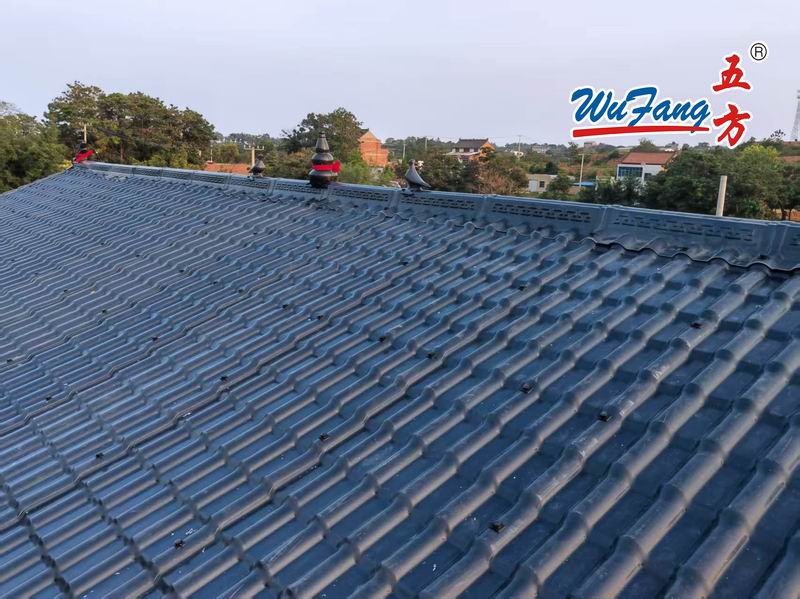 合成樹脂瓦的建筑簡易,施工期短:所有構件均在工廠預制的完成,現場只需簡單的一種拼裝,從而大大縮短了施工的具體周期,一座大約6000平方米的建筑物,只需大概40天即可基本安裝完成。